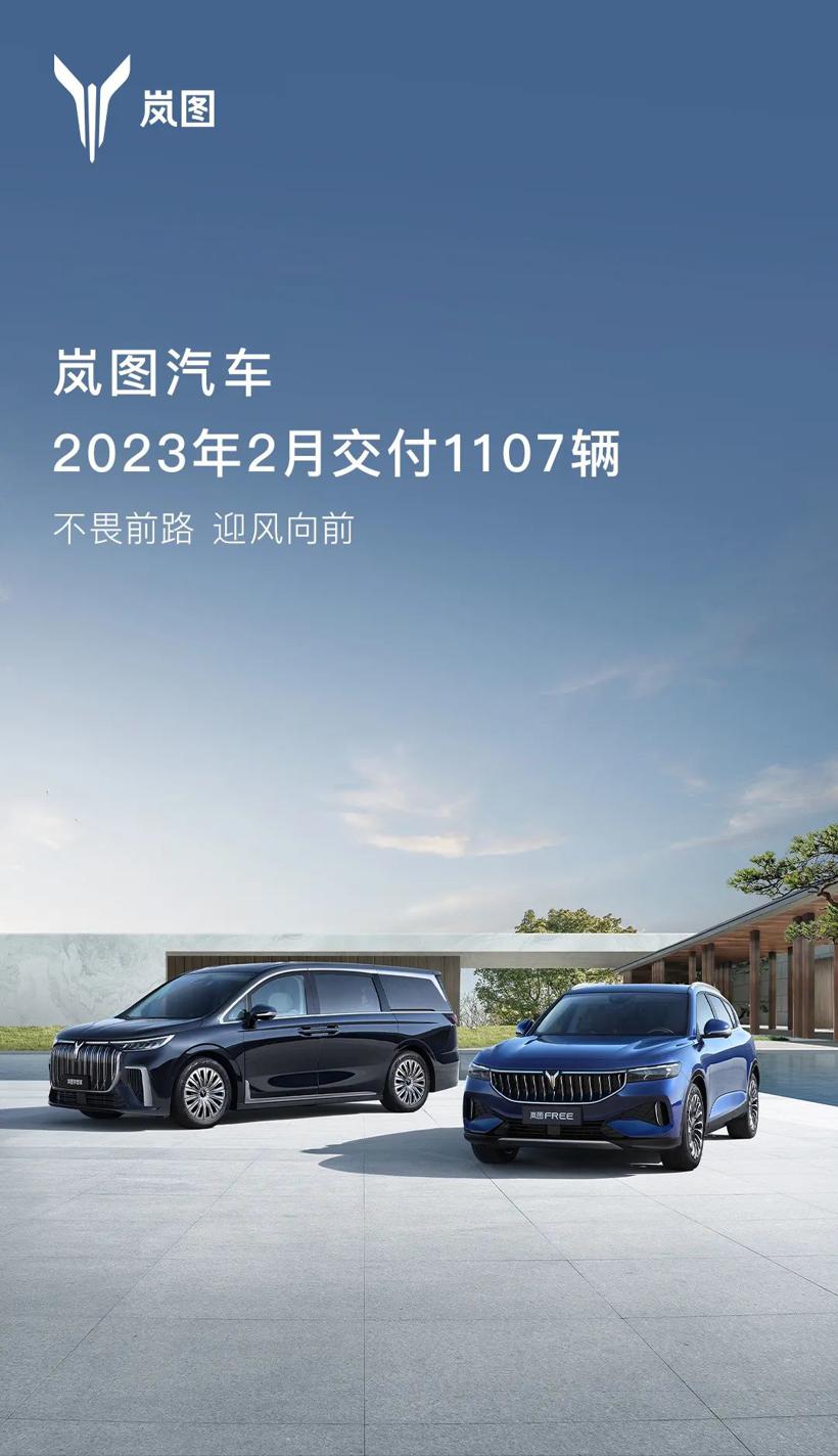 3月1日晚,岚图汽车公布了2023年2月交付数据。上个月,岚图汽车共交付新车1107辆,与1月1548辆相比,环比下降28%。