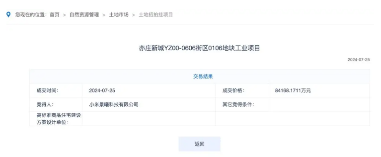 据悉,该工厂由小米通讯技术有限公司全资子公司小米景曦科技有限公司以约8.42亿元竞得地块,紧邻已投产的一期工厂。据知情人士透露,工地过年不放假,预计明年三、四月份开始调试,6月中旬竣工交付。