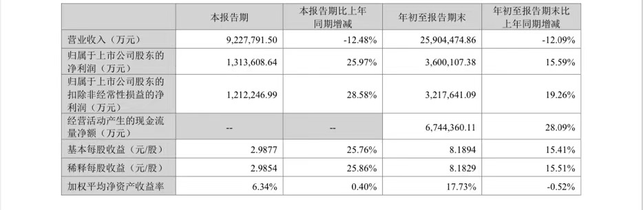 近日,宁德时代发布2024年三季报。根据财报,今年第三季度,宁德时代营业收入为922.78亿元,同比减少12.48%,但净利润为131.36亿元,同比增长25.97%,超过市场预期。